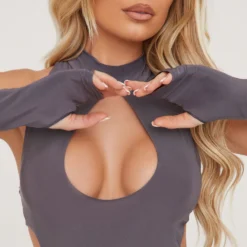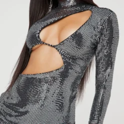EGO Long Sleeve Halterneck Plunge Front Cut Out Detail Mini Bodycon Dress In Black Slinky