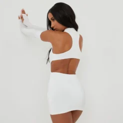 EGO Key Hole Cut Out Mini Bodycon Dress With Sleeves In White