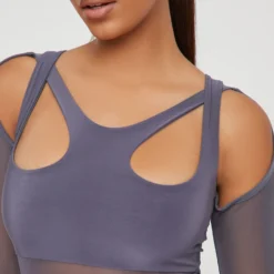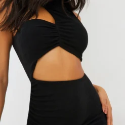EGO Long Sleeve Cut Out Ruched Detail Mini Dress In Black Knit