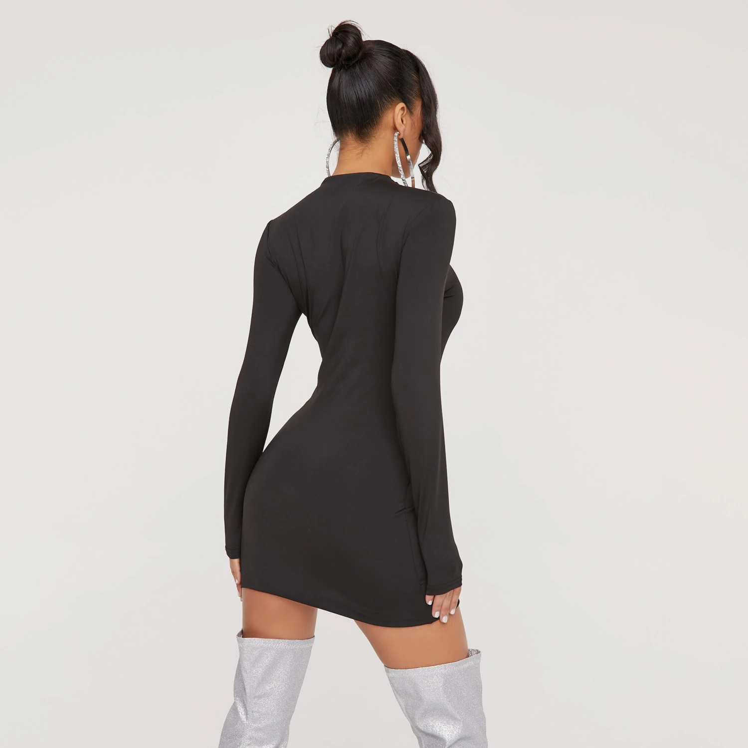 EGO High Neck Long Sleeve Super Stretch Mini Bodycon Dress In Black