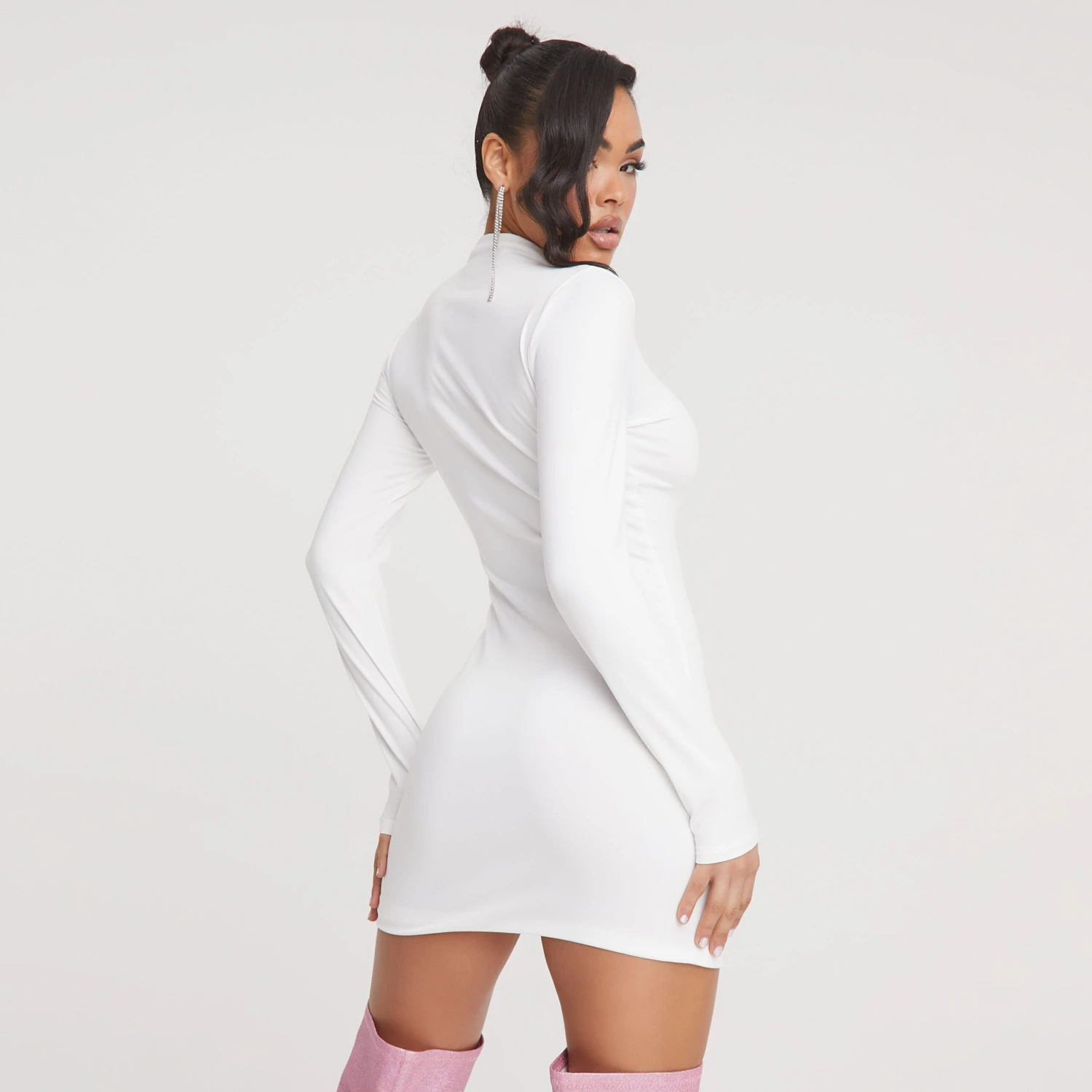 Be the first to review “EGO High Neck Long Sleeve Super Stretch Mini Bodycon Dress In White” Cancel reply