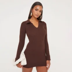 Be the first to review “EGO Long Sleeve Collared Mini Bodycon Dress In Brown Knit” Cancel reply