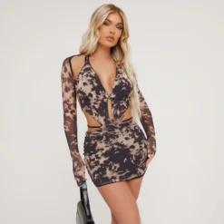 Be the first to review “EGO Long Sleeve Halterneck Open Back Strappy Detail Mini Bodycon Dress In Stone Acid Print Mesh” Cancel reply