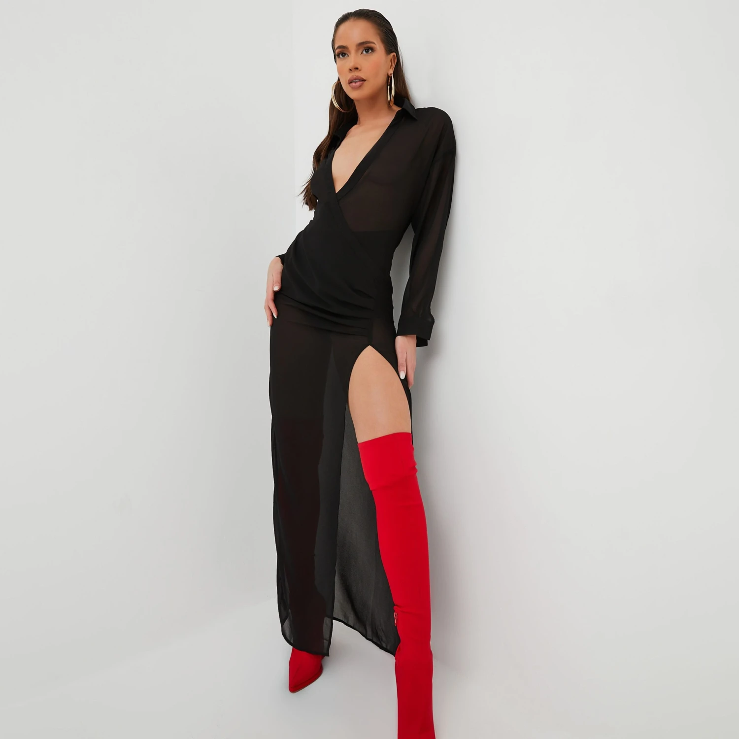 Be the first to review “EGO Long Sleeve Maxi Shirt Dress In Black Chiffon” Cancel reply