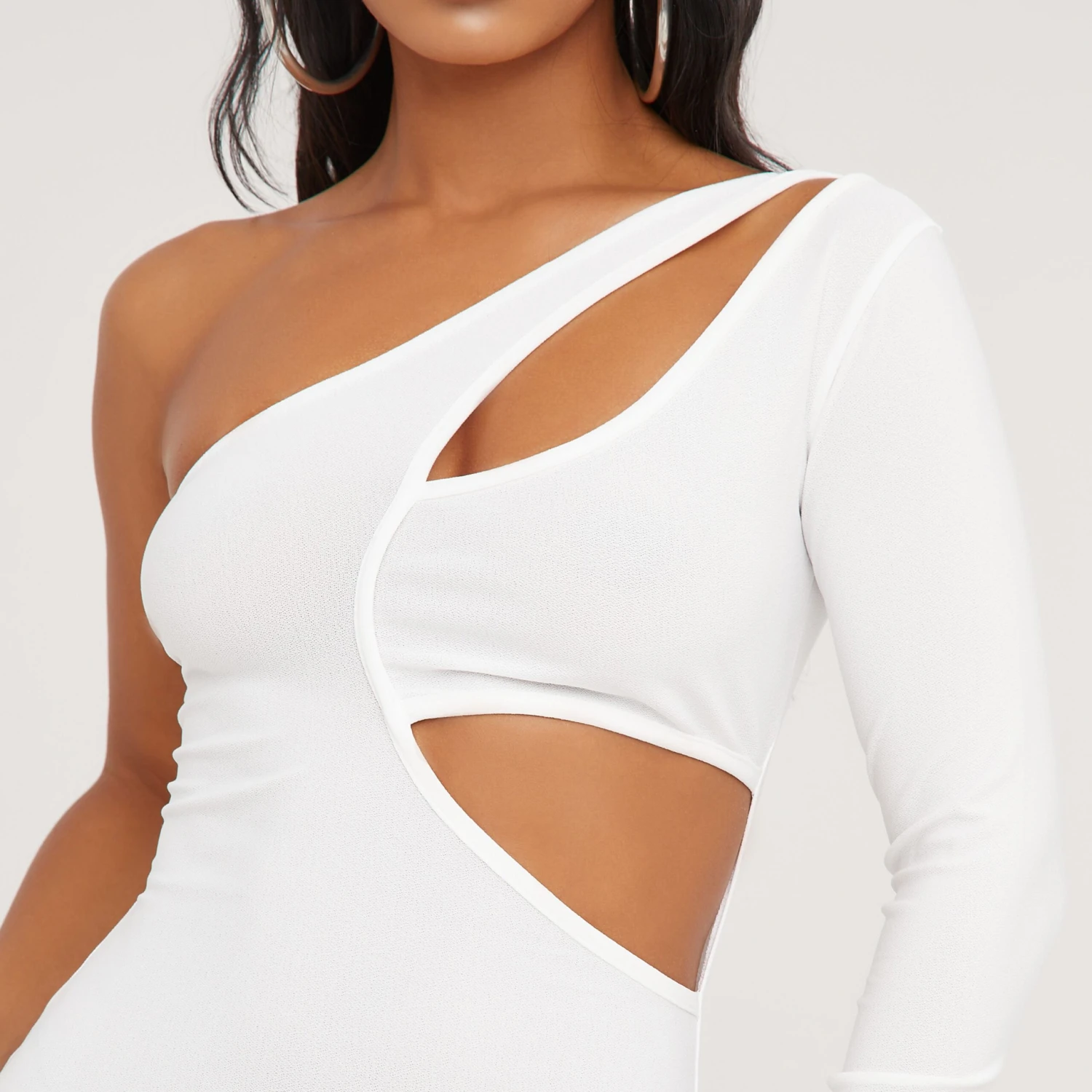 EGO One Sleeve Cut Out Detail Mini Bodycon Dress In Cream Crepe