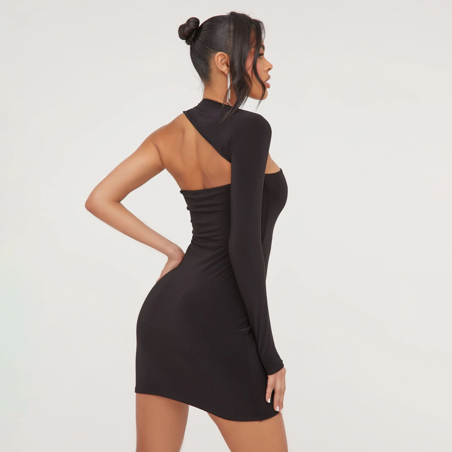 Be the first to review “EGO One Sleeve Mini Bodycon Dress In Black Slinky” Cancel reply