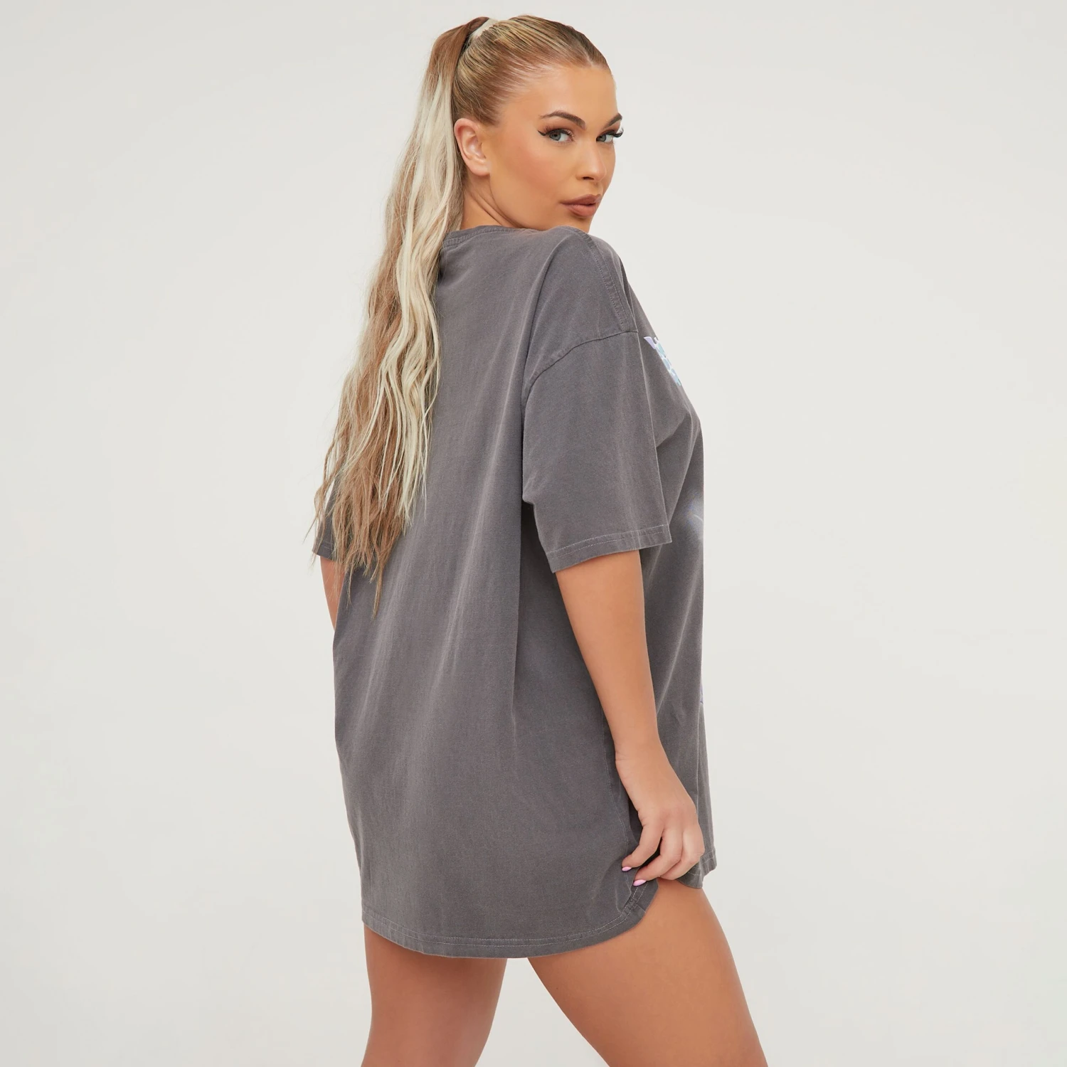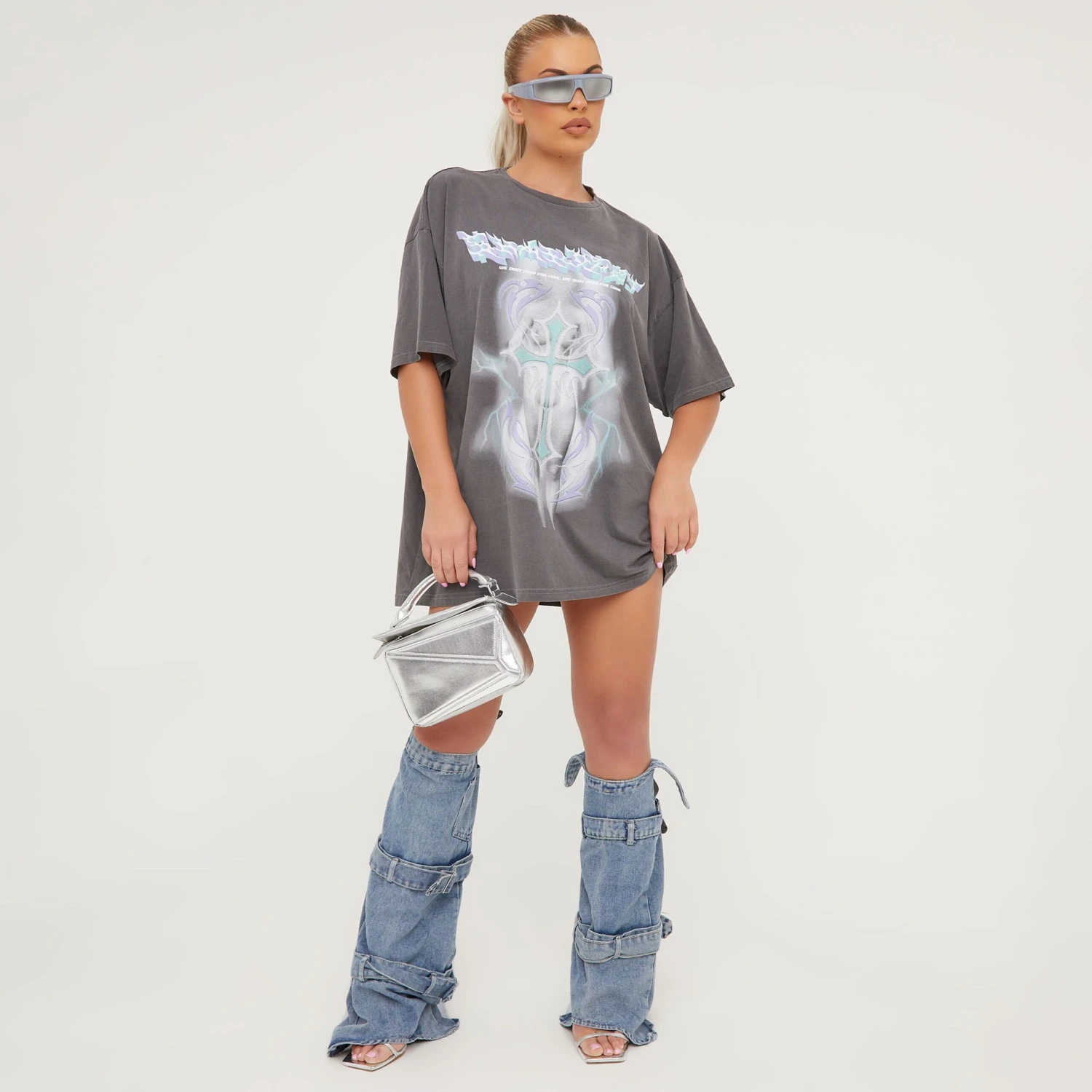 EGO Oversized Cross Graphic Print T-Shirt Dress In Grey
