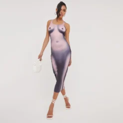 Be the first to review “EGO Scooped Neck Body Print Detail Midi Bodycon Dress In Pink” Cancel reply