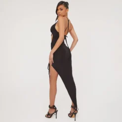 EGO Strapless Cut Out Detail Mini Bodycon Dress In Black Slinky