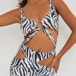 EGO Cut Out Ring Detail Mini Bodycon Dress In Zebra Print Slinky