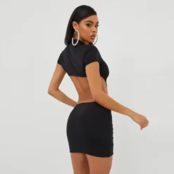EGO Cut Out Ruched Detail Mini Bodycon Dress In Black Slinky