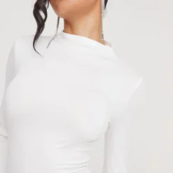 EGO High Neck Long Sleeve Super Stretch Mini Bodycon Dress In White