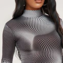 EGO Long Sleeve High Neck Body Print Detail Mini Bodycon Dress In Black And Grey