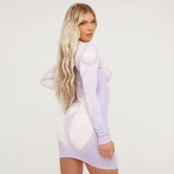 EGO Long Sleeve High Neck Body Print Mini Bodycon Dress In Lilac Multi